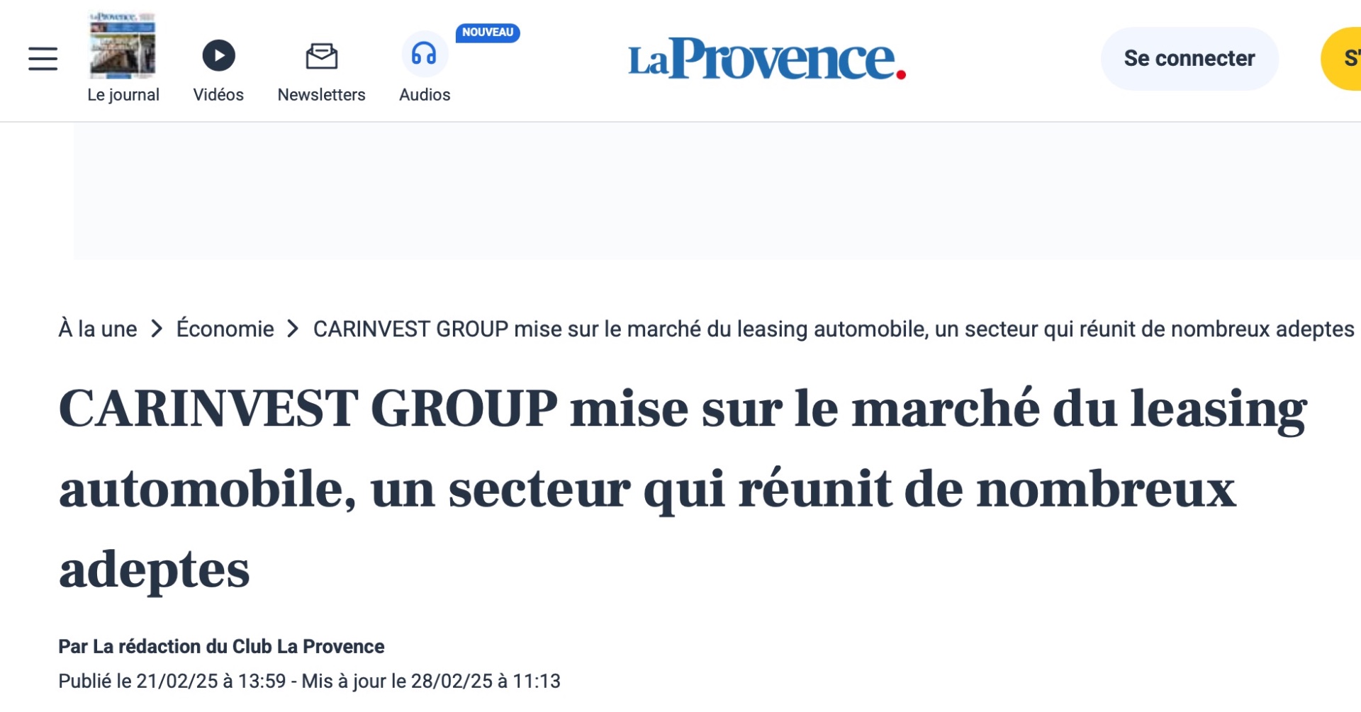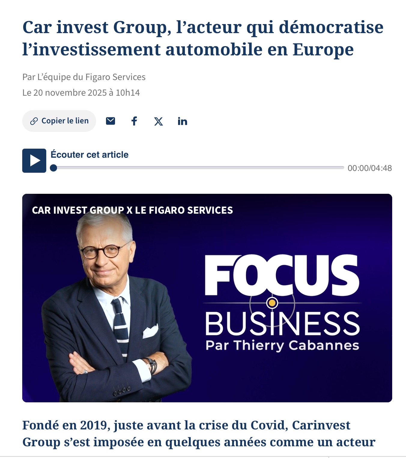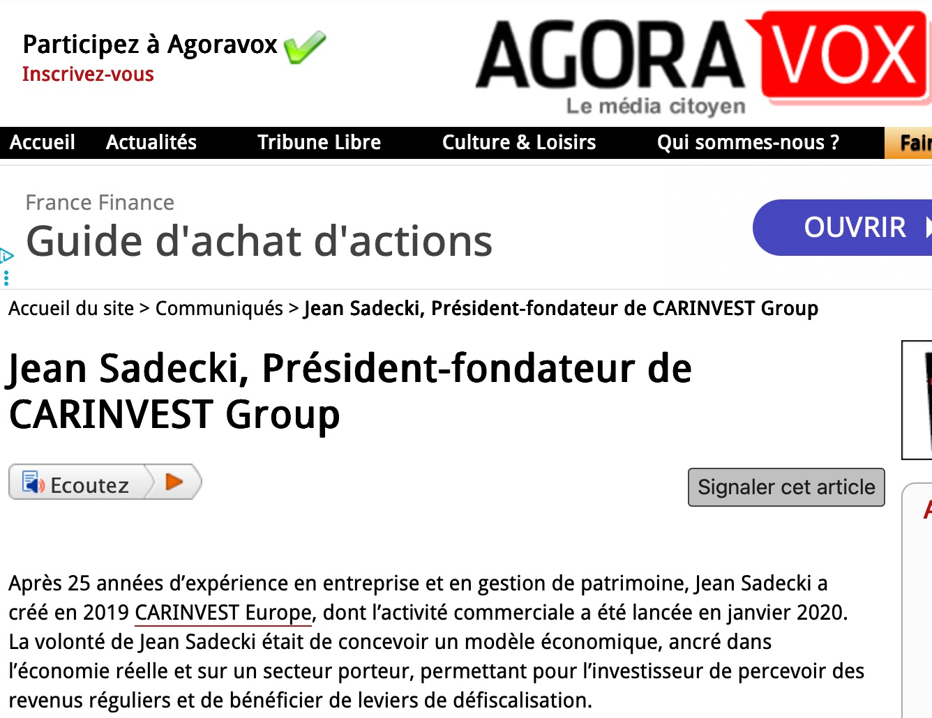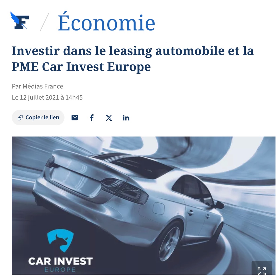 Découvrez une sélection d’articles, d’interviews et de reportages qui mettent en lumière notre vision de l’investissement, notre croissance et la confiance de nos partenaires. La presse s’intéresse à nos solutions accessibles et à notre ambition de démocratiser l’investissement financier. Explorez nos parutions médias et plongez dans ce que l’on dit de Carinvest Group, acteur engagé au service des investisseurs d’aujourd’hui et de demain.